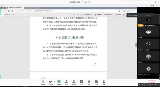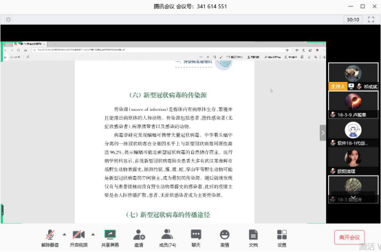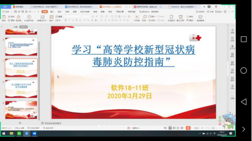 疫情就是命令,防控就是责任。针对近期在全国发生的新型冠状病毒肺炎疫情,习近平总书记多次作出重要指示,强调要把人民生命安全和身体健康放在第一位,制定周密方案,组织各方力量开展防控,采取切实有效措施,坚决遏制疫情蔓延,坚决打赢疫情防控人民战、总体战、阻击战。通过学习疫情防控知识,帮助学生正确认识、理性看待、科学应对新冠肺炎疫情,引导学生在思想上、行动上做好返校和上课准备。3月29日下午18:00,yl7703永利官网组织召开“高等学校新型冠状病毒肺炎防控指南”主题班会,在班主任、副班主任老师的带领下开展了线上学习讨论。